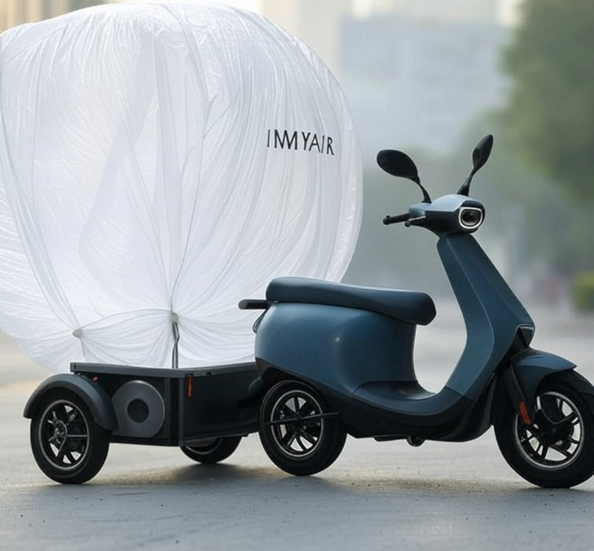 Our Scooters will attach a cargo trailer with a transparent balloon filled with local air to make the invisible pollution visible to everyone,.